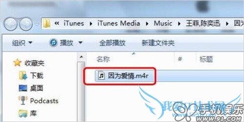 6) 将Windows 资源管理器中的****.m4r添加至iTunes资料库里的铃声中,操作方法与添加音乐相同。