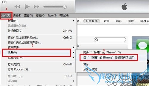 e) 在iTunes上进入-文件-设备-自XX 的iPhone传输购买的项目。