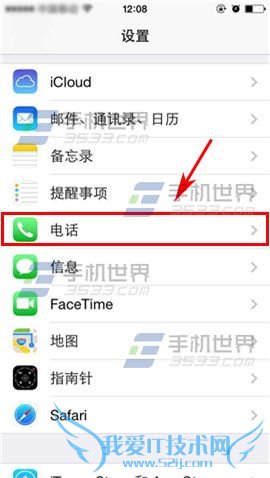 1)点击【设置】进入,然后点击【电话】一栏。(如下图)
