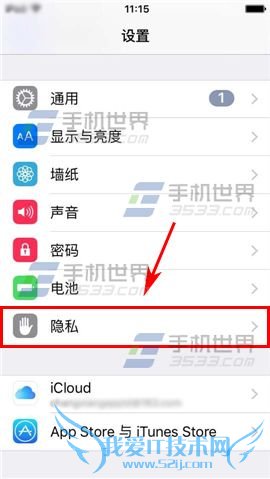 1)点击【设置】进入,然后点击【隐私】。(如下图)