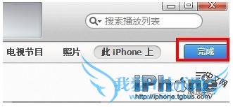 6、在菜单栏上点击“完成”,再点击右上角“iPhone”旁边的弹出图标,即可拔下iPhone数据线。