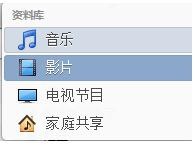 2、点击菜单栏上的“音乐”,在弹出的“资料库”选项中选择“影片”。