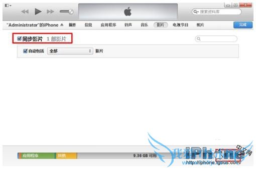 5、在菜单栏上点击“影片”,进入影片设置界面。勾选“同步影片”,并点击右下角的“同步”。