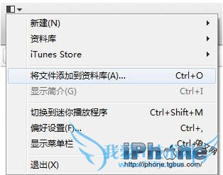 3、点击左上角图标,选择“将文件添加到资料库”,或者直接将视频拖动到影片资料库中空白处。注意,要同步到iPhone上的视频必须是mp4格式的。