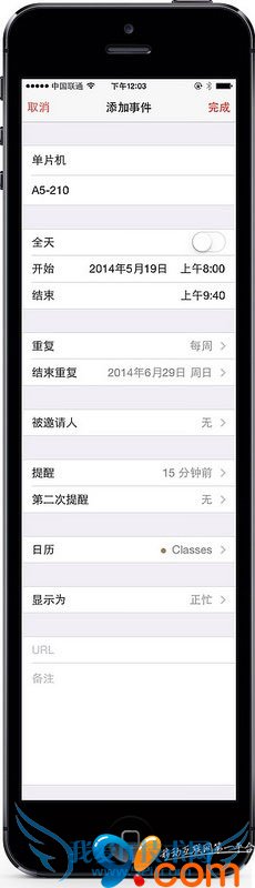 因此,我们完全可以利用 iOS 自带的「日历」App,配合「通知中心」的便利,来完成这一简单的需求:一个按时提醒、清晰展示于手机中的课程表。更棒的是,你还可以将它轻松分享给全班同学,有没有觉得很棒呢?