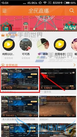 1)点击打开【全民直播】,点击下方要给主播送礼物的直播间;(如下图)
