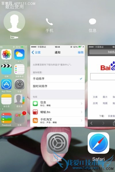 第一步,按两次Home键进入程序后台,在程序后台上方可以看到最近的联系人。