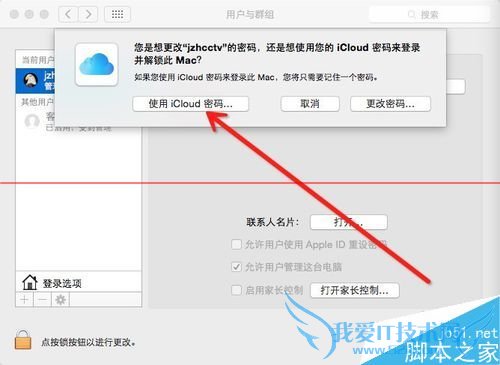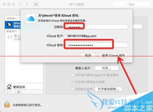 3、输入旧密码,使用 iCloud 账户(即 Apple ID )和相应的密码登录,选择 “使用 iCloud 密码”