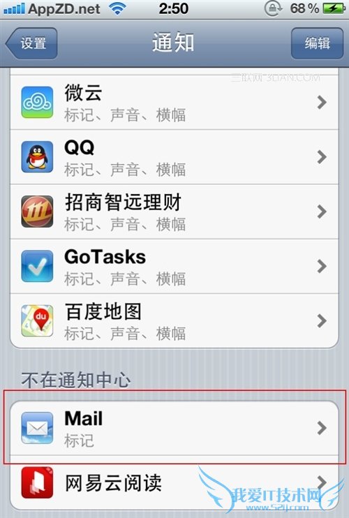 如上所示,如果设置了收到邮件发出声音又设置邮件不在通知中心,则必然结果是有声音但却不知道哪里发出来的。