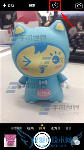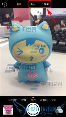1)首先,打开iPhone6的【相机】,点击界面上方【时钟图标】,选择一个延时拍照时长。(如下图)