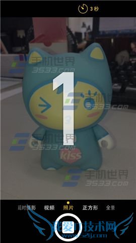 2)选择好延时时长后跟正常拍照一样点击下方【白色圆点】拍照,系统此时会自动倒计时,在倒计时完成后拍照。(如下图)