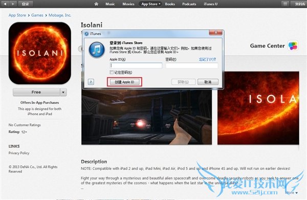 点击Free按钮后,在弹出的登陆框中点选“创建Apple ID”.
