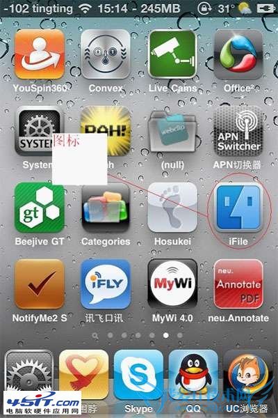 首先:你的iphone4已经越狱,没有越狱的和不喜欢越狱的朋友请忽略一下所有文字跟图片,谢谢