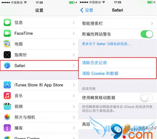 在“设置”中找到“Safari”,然后单击“清除历史记录”和“清除的cookie和数据”按钮,就可以清除Safari的缓存。