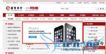 在招商银行官网可以看到分期购买iphone6 的活动图,点击该活动图