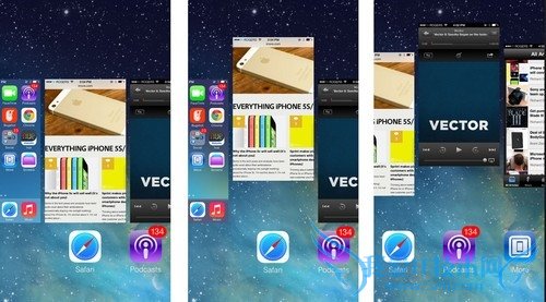 第四个手势操作功能在于全新的多任务界面上。为此多任务界面进行了很大程度的变革。当我们双击主屏幕键呼出多任务时,可以通过向上滑动任务的方式关闭后台应用,非常简单易用。