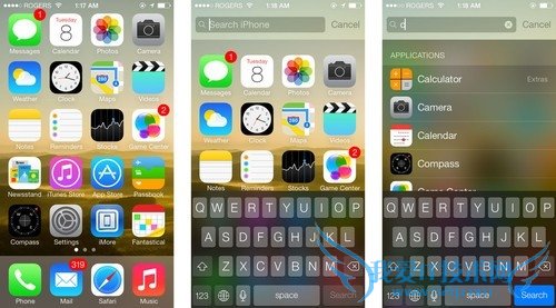 最后一项手势操作在于调出搜索界面。在之前的系统中,我们都是需要在主界面向右滑动界面来调出搜索界面,而现在我们仅需要在主界面屏幕上用手指向下滑就可以调出搜索界面,搜索功能可以快速的帮你定位到相关的App上以及信息上,非常实用的小工具。