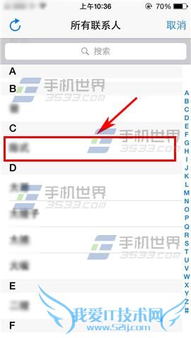 1)进入【通讯录】界面,点击【个人收藏】再点选右上角【+】图标,进入所有联系人界面选择一个【联系人】。(如下图)