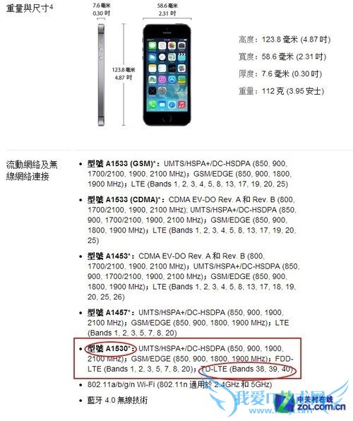 港版iPhone 5s支持移动3G(图片来自于威锋)