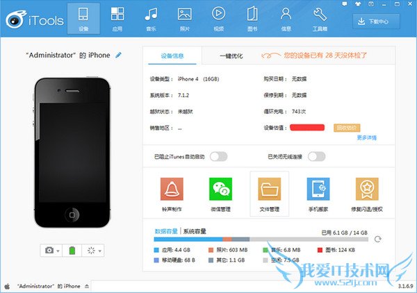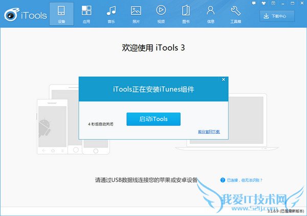 2)iTunes组件安装完成后,点击启动iTools即可正常连接。