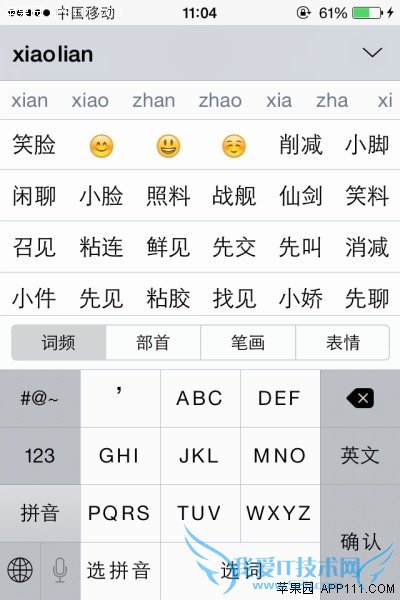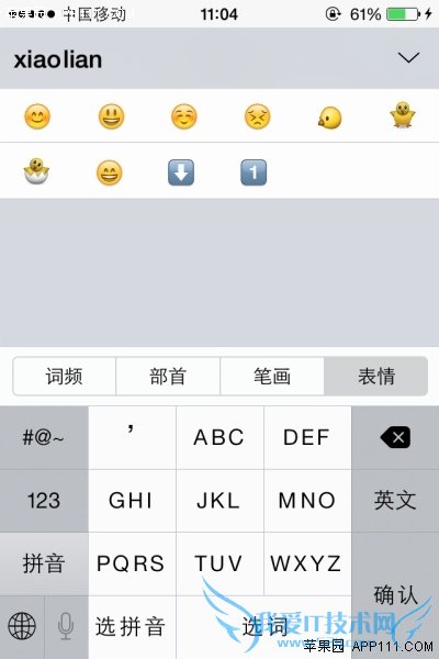 在iOS8系统中,对键盘输入也有一些改进,例如在表情输入时,有更简便的输入方法。具体操作如下: