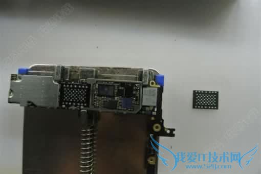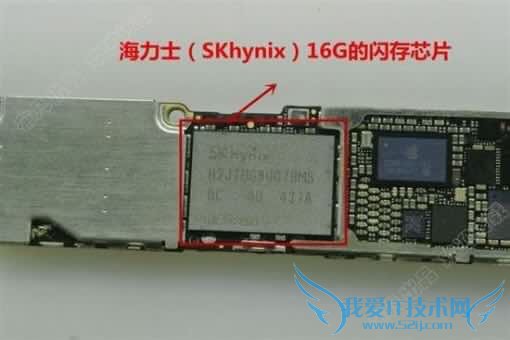 iPhone 6 Plus和iPhone 5s的主板相比,要薄一些,下图中所示即为16GB的海力士闪存芯片,所谓的升级内存也就是更换这颗闪存芯片。有的人就要问了6代不是说硬盘,基带CPU,码片,指纹,A8主CPU有加密的嘛,怎么能单换。是的传统方法来改内存的话就得换一套芯片,但是现在不一样了,出了硬盘序列号读写设备的神器,可以单换硬盘了,苹果现对6代的激活验证机制是硬盘序列号,手机IMEI串号,还有指纹和CPU相匹配才能激活正常使用,每一个硬盘都有不同的序列号,换成别的不是一套的,手机就激不活没法正常使用,只需要把要更换的128G硬盘序列号改成和原来我16G硬盘序列号一样的就可以正常验证激活了。