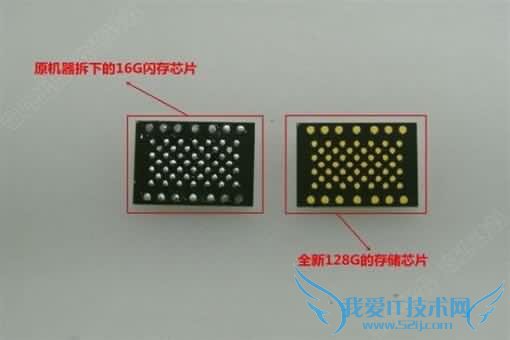 16GB的闪存芯片拆掉以后,就可以安装新的128GB闪存了。
