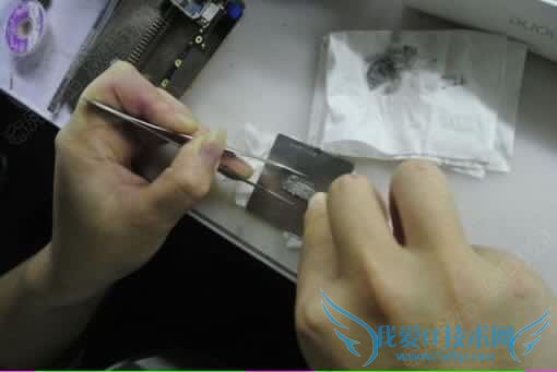 接下来就是安装新硬盘部分了,把植好锡的新硬盘拿过来
