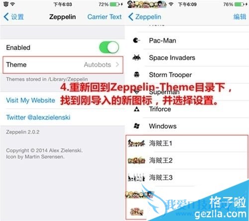 4. 重新回到 Zeppelin-Theme 目录下就可找到刚导入的新图标,并选择设置。