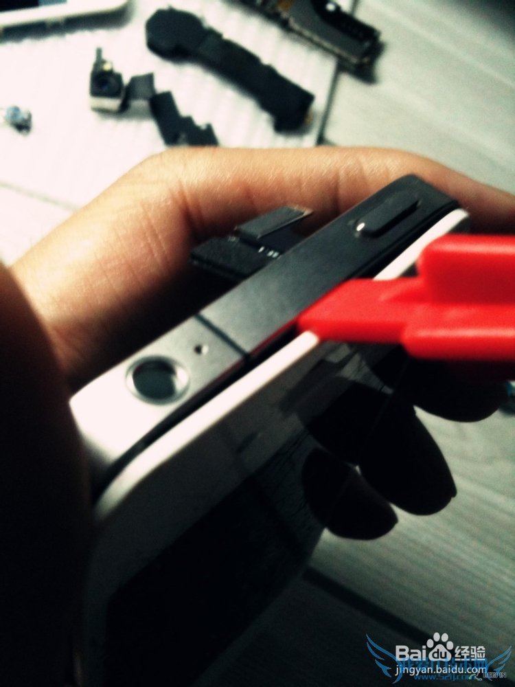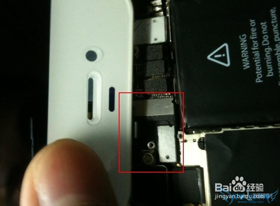 7、接着我们卸掉SIM卡槽上面的挡板,并用撬具或指甲撬开这个排线