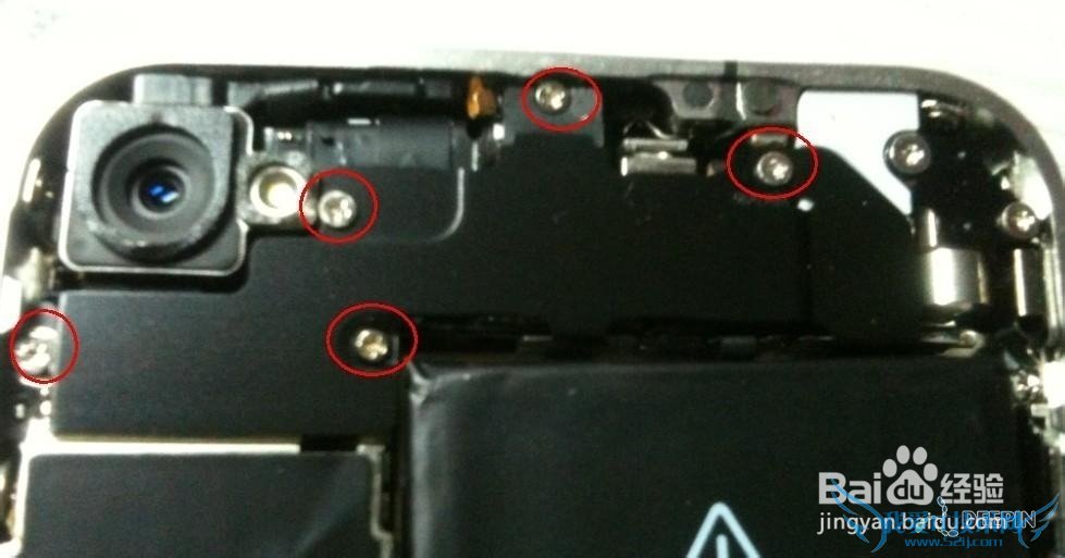 3、打开后盖后,接下来,我们先拆上面部分的几颗螺丝。有的螺丝是上下两个,注意把螺丝归好类,最好记住,这手机螺丝特别多,一部小心就混淆。