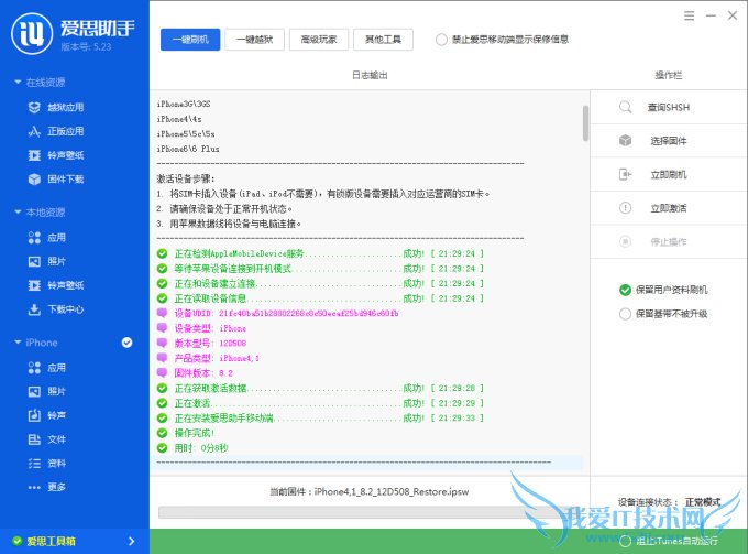 1.下载安装好爱思助手最新版本之后连接手机,到爱思助手“在线资源-固件下载”区下载手机相对应的iOS 8.2固件