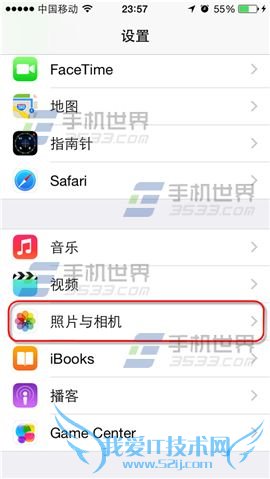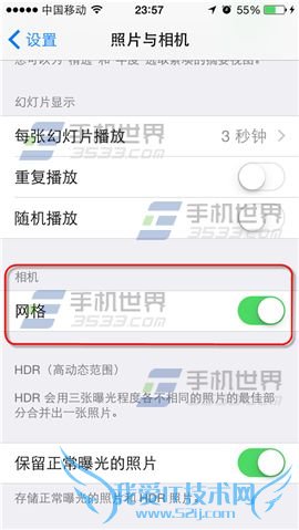 1)进入iPhone6plus【设置】界面,点击【照片与相机】,开启【网格】即可。(如下图)