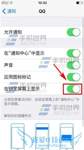 ¡¡¡¡2)ÔÚ֪ͨ½çÃæÑ¡ÔñÒ»¸öÓ¦ÓóÌÐò£¬ÕâÀïÒÔ¡¾QQ¡¿ÎªÀý£¬½Ó׏رա¾ÔÚËø¶¨ÆÁÄ»ÉÏÏÔʾ¡¿Óұ߻¬¿é¼´¿É¡£(ÈçÏÂͼ)