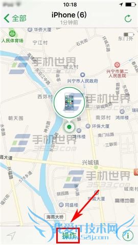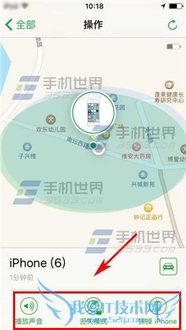 4)定位好后点击【操作】,选择【播放声音】、【丢失模式】或者【抹掉iPhone】来对丢失的手机进行操作。(如下图)