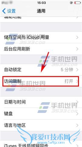 1)点击进入设置,然后点击【通用】一栏,再点击【访问限制】。(如下图)