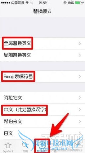 - 替换模式 > 中文 > 恢复系统字体