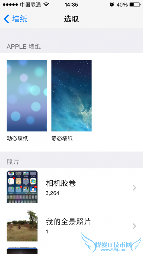 ios7终于可以添加全景的墙纸了,横形长方图做墙纸终于不尴尬!还有自带的动态墙纸可选择!