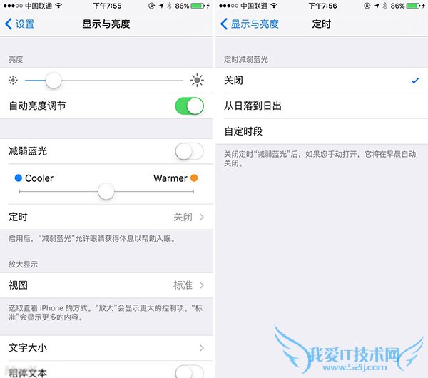 iOS 9.3 新加入的减弱蓝光对于喜欢在睡前玩会手机的朋友来说,非常有用。如果睡前被蓝光影响,我们的睡眠也会受到影响。iOS 9.3 的减弱蓝光可以在设置——显示与亮度中找到,减弱蓝光通过拨动开关开启,并可以选择 cooler 以及 warmer,两个单词旁边还有蓝色和橙色的圆点,提示用户可以根据需要选择减弱蓝光的程度。一般滑动条位于中间位置即可,在下面的选项是定时功能,可以选择关闭定时功能,从日落到日出以及自定义时段。由于白天蓝光对我们的影响不大,推荐大家选择从日落到日出即可。选择之后,iOS 9.3 会根据用户位置信息,在太阳下山时开启减弱蓝光,并在早晨时将屏幕调整成正常状态。