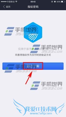 2)在界面点击开启【指纹密码】,再点击【我已了解】。