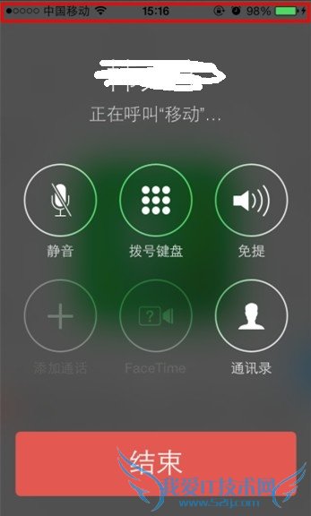 2、打开电话程序,给任何一个人拨号,你会发现拨号界面最上方的状态栏是黑色字体(下图里红框),什么都看不清楚。