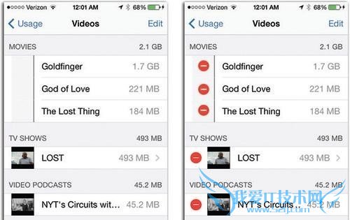 点击右上角的编辑按钮,就会出现红色的删除按钮,如上图右侧的图片所示,现在你可以动手腾出一些空间了。