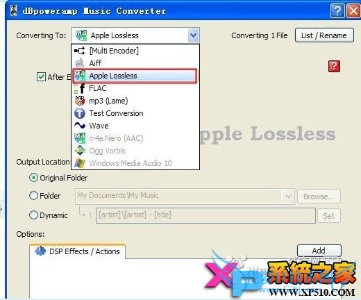 3、设置转换格式(选择APPLE LOSSLESS) 这是苹果自己的无损格式.