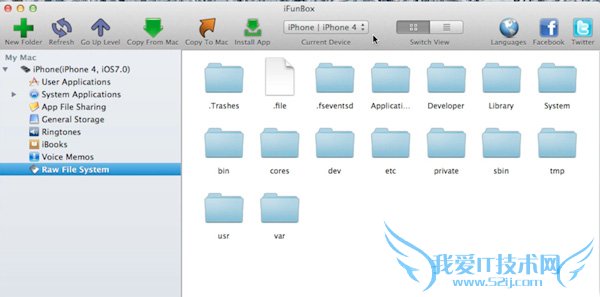 这个时候你的iPhone 4应该就Root成功了,打开iFunBox,在软件左边查看设备的状态,如果能够看到“Jailed”字样,那么你的设备就Root成功了,此时你就能 够管理你的iPhone 4中的所有文件了。如果失败,返回第一步重试。如果出现什么严重错误的话,用尝试使用iTunes重新刷机。