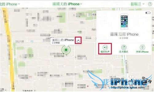 6、手机开始定位查找,网页上定位可能会慢些,稍等片刻。找到定位后会显示“小绿点”双击后,会显示你手机的信息。如果能准确定位后---点击“播放铃声”(和手机铃声声音大小差不多),选择手机会发出声音,你就可以听到你手机的具体位置了。