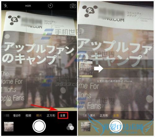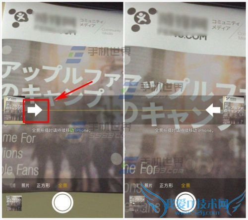 2)打开全景模式后我们再点一下那个【箭头】即可切换拍摄方向了。(如下图)
