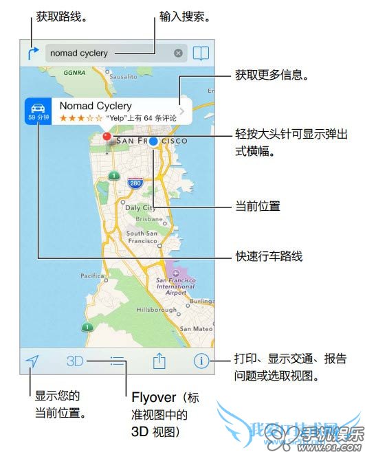 【重要事项】地图、路线、Flyover 视图以及基于位置的应用程序取决于数据服务。这些数据服务会随时变更,而且并非在所有区域都可用,因此这些服务所提供的地图、路线、Flyover 视图或者基于位置的信息可能会不可用、不准确或不完整。某些“地图”功能要求使用“定位服务”。