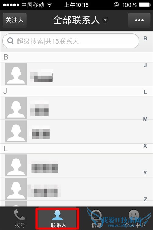 2、然后,打开QQ通讯录,打开“联系人”界面;