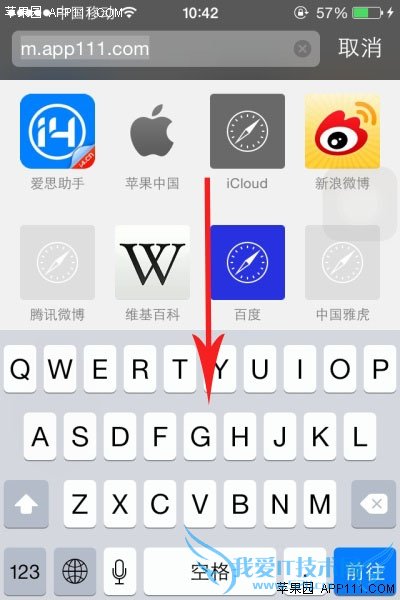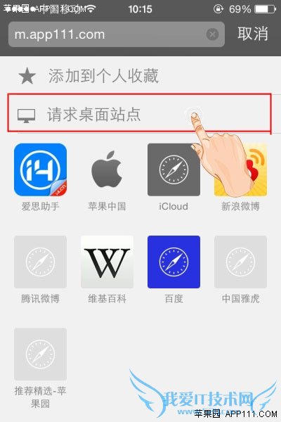 第二步,当Safari显示主页页面时,再将手指向下拉动屏幕,可以显示请求桌面站点的按钮。
