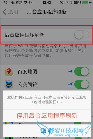 关闭后台应用程序刷新iOS7引入了一个新的功能,即真后台,不过这个功能基本是针对A6以上芯片来定制的,对于A4芯片,运行假后台都够吃力了,就不要搞真后台了